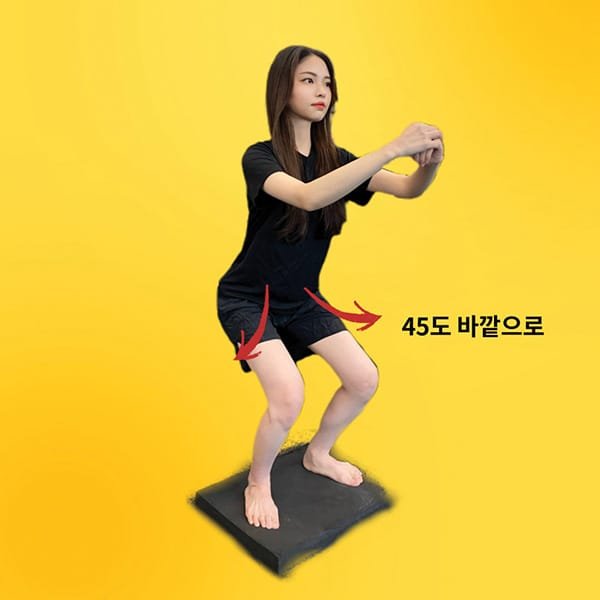 폼 밸런스 패드 위에 서서 양 다리를 골반 바깥쪽으로 45도 벌리고 스쿼트를 하는 것도 비골근과 발가락 굴곡근을 동시에 강화하는 데 도움이 됩니다. 근육이 길어진 상태에서 훈련을 하는 것이 중립이나 짧아진 상태에서 훈련을 하는 것보다 훨씬 더 근력 향상에 도움이 됩니다.
