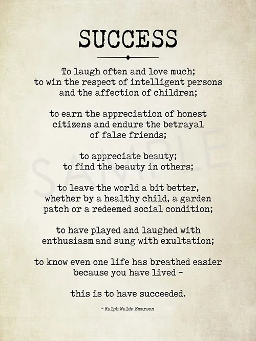 “…To leave the world a bit better, whether by a healthy child, a garden patch, or a redeemed social condition; to know even one life has breathed easier because you have lived. This is to have succeeded.”
